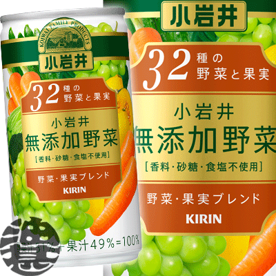 【キリン 小岩井 無添加野菜 32種の野菜と果実】190ml缶(30本入り1ケース) 「小岩井 無添加野菜」は、小岩井の品質基準で選んだ30種類以上もの野菜・果実を使用し、「香料・食塩無添加」で仕上げた、素材そのもののおいしさがぎっしりと詰まった野菜飲料です。「無添加野菜 32種の野菜と果実」は、32種類の野菜と果実をブレンドし、ジュース感覚でおいしく飲める贅沢な味わいに仕上げました。 原材料/濃...