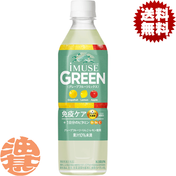 【iMUSE (イミューズ) グリーン】500mlPET 「プラズマ乳酸菌」を1,000億個と、1日分のビタミン(B1、B6、C)を配合し、グレープフルーツミックス味のすっきりとした甘さで日常の水分補給やリフレッシュにもぴったりな味わい(果汁10%未満) 原材料/砂糖類(果糖ぶどう糖液糖(国内製造)、砂糖)、果汁(グレープフルーツ、りんご、レモン)、乳酸菌末/酸味料、香料、V.C、紅花色素、V.B...