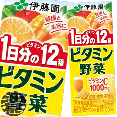 【伊藤園 ビタミン野菜】200ml紙パック 21種類の野菜と7種類の果実を使用した、ビタミンC(1000mg含有)、ビタミンE、ナイアシン、ビオチンをはじめとする1日分のビタミンを12種補給できる野菜飲料です(野菜汁・果汁100%(野菜汁分50%))。 原材料/野菜(にんじん、トマト、有色甘藷、レタス、赤ピーマン、インゲン豆、ケール、ピーマン、白菜、ブロッコリー、セロリ、アスパラガス、かぼちゃ、...