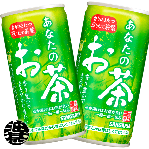 【サンガリア あなたのお茶】190ml缶 茶葉がお茶を濾す自然抽出法で作り、香り豊かでまろやかな後味すっきりのお茶。 渋くない仕上がりが、お子様からお年寄りまで幅広い世代の方に美味しく飲んでいただけます。 原材料/緑茶(国産)、ビタミン 栄養成分(100mlあたり)/エネルギー0kcal、たんぱく質0g、脂質0g、炭水化物0g、ナトリウム0〜20mg