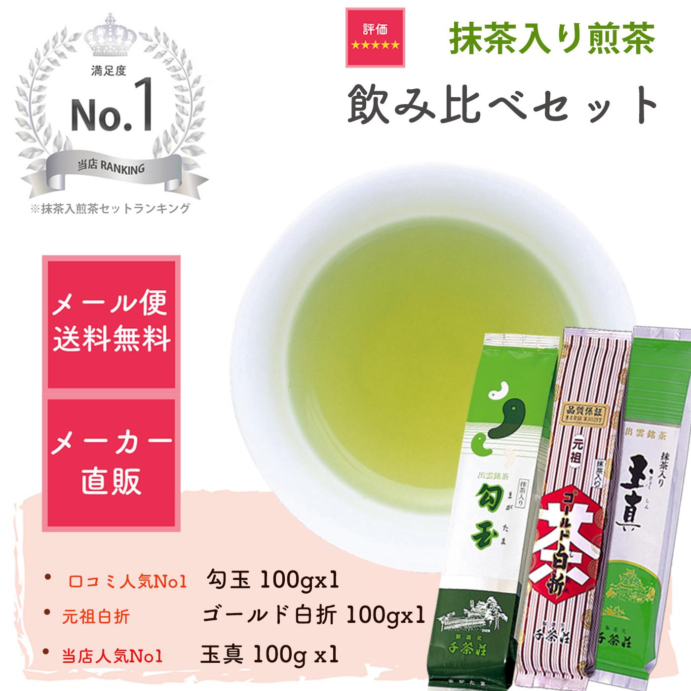 千茶荘 抹茶入り煎茶 ゴールド白折・勾玉・玉真 100gx3 (お茶 抹茶入り 人気茶 煎茶 抹茶入り煎茶 来客 ギフト 内祝い 引き出物 水出し )